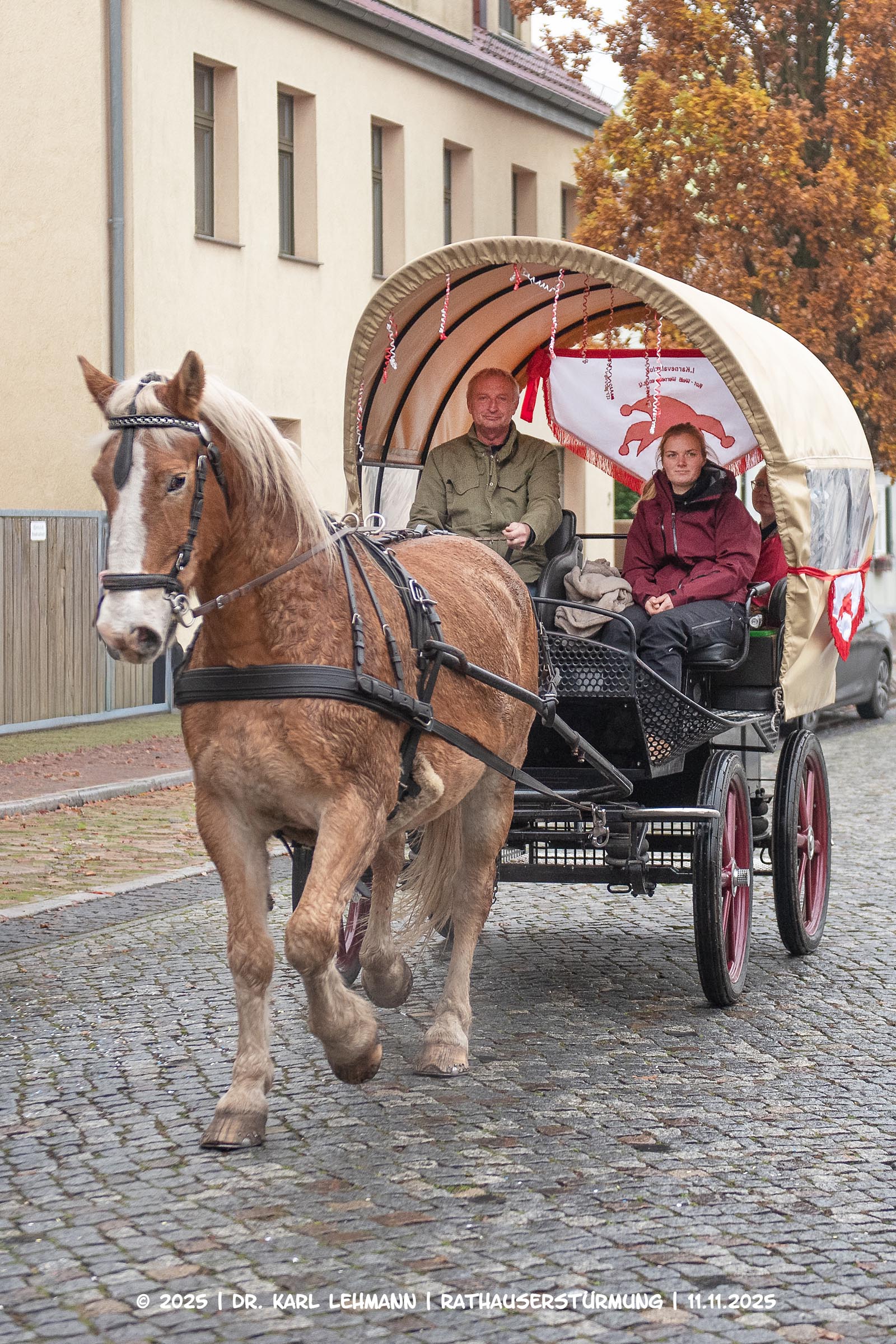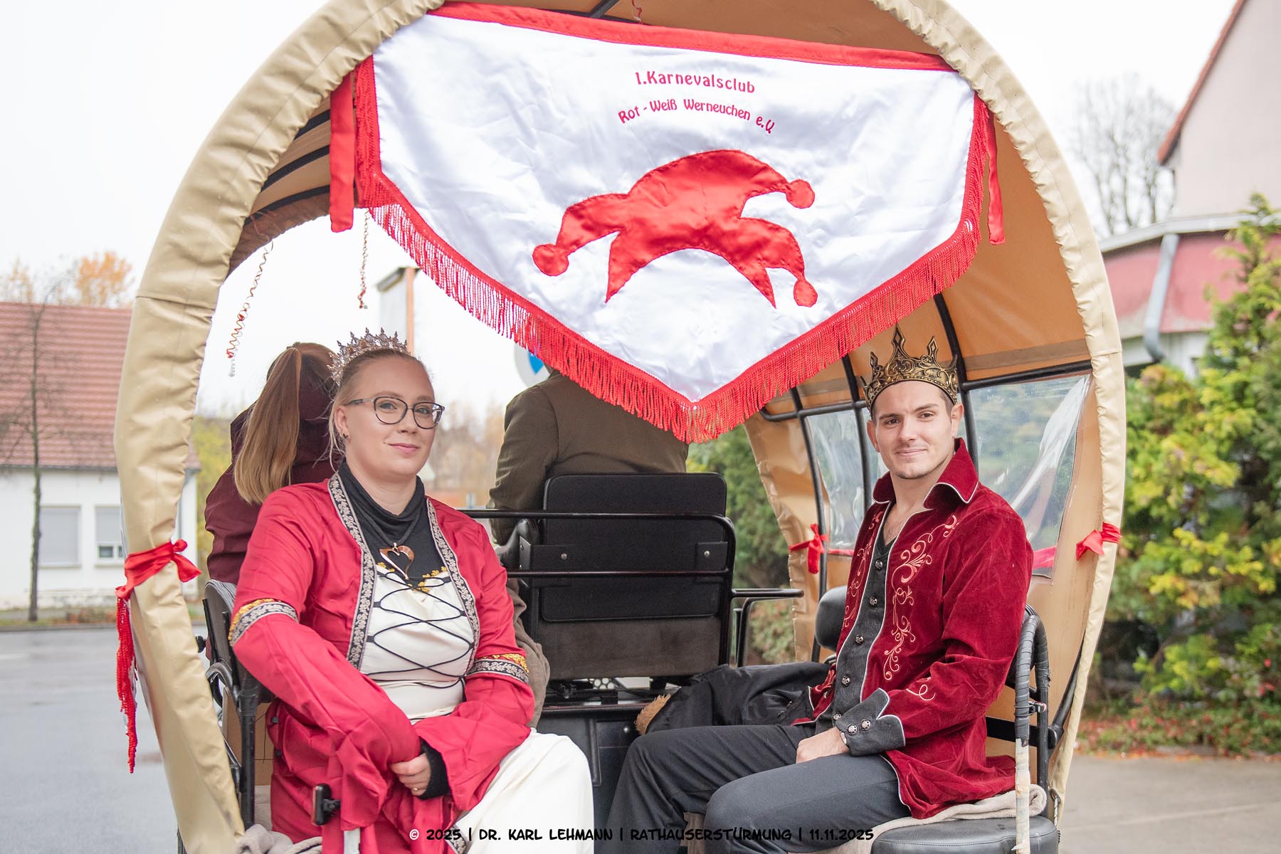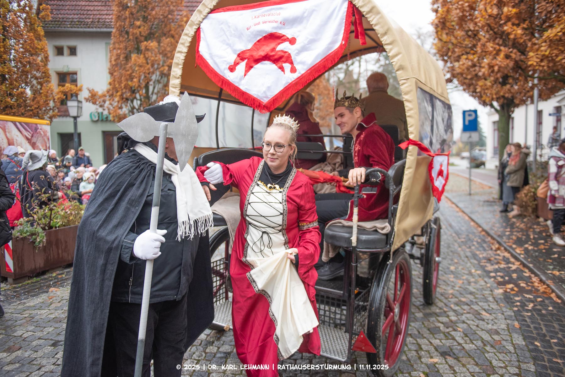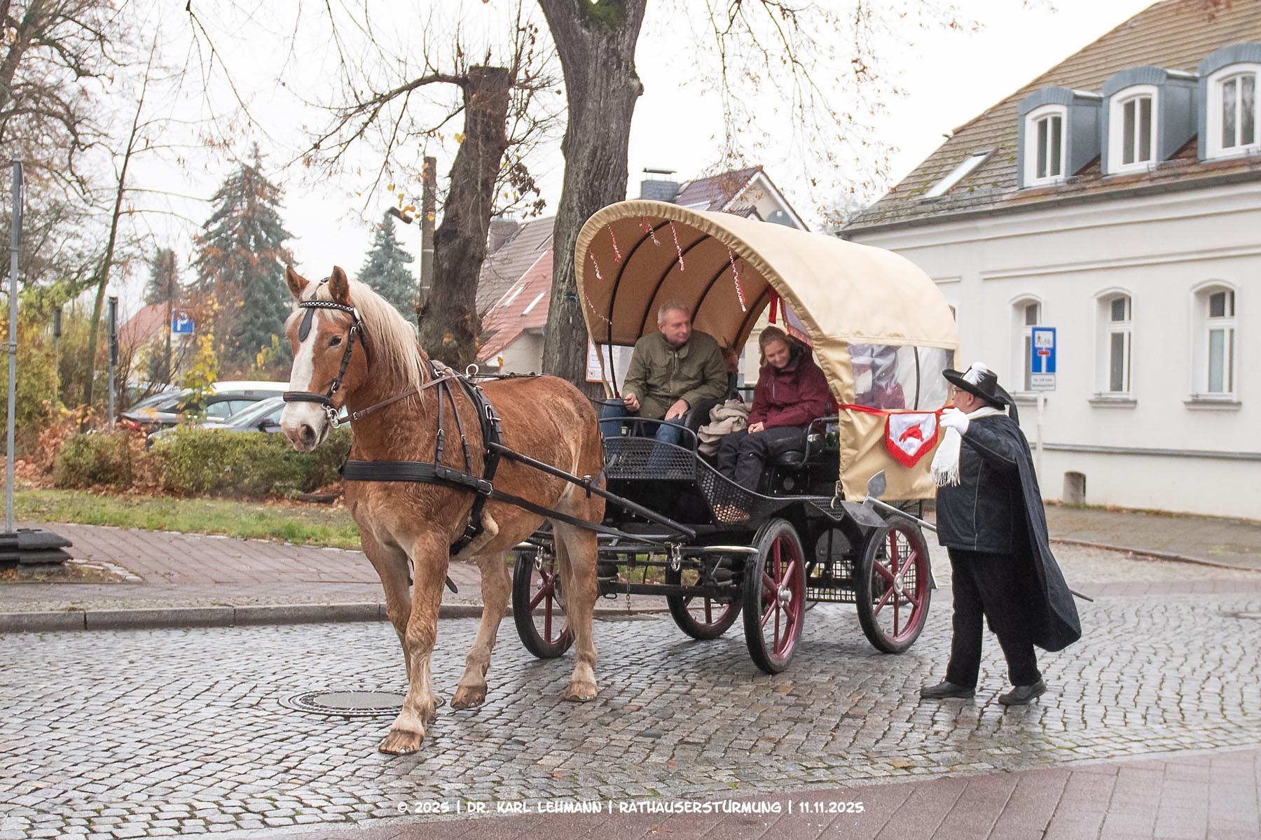 Festlich geschmückt rollte eine Pferdekutsche vor das Rathaus – an Bord: das frisch gekrönte Prinzenpaar, Prinzessin Lydia die Erste und Prinz Sven der Zweite.